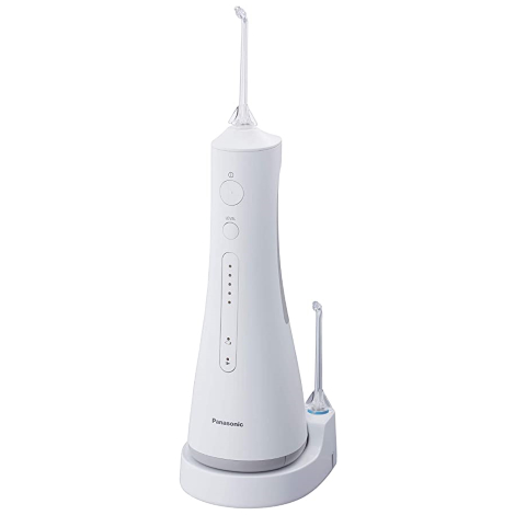 An oral irrigator made stylish – that’s Panasonic. A sleek and sophisticated design will surely fit in anyone’s bathroom. Not to mention its convenient cordless design. Of course, since it’s operated by batteries, you must make sure it’s charged before use. This is both an advantage and a disadvantage because due to cordless operation, you can use this Panasonic water flosser wherever you go, but if it runs out of battery, you have to find a place to charge it. It takes approximately an hour to fully charge. But the device is really compact, and the water tank tops up easily. It’s also super easy to assemble, all the nozzles attach easily, you just to press the button to release when removing. It’s a bit loud though, almost like an electric toothbrush.